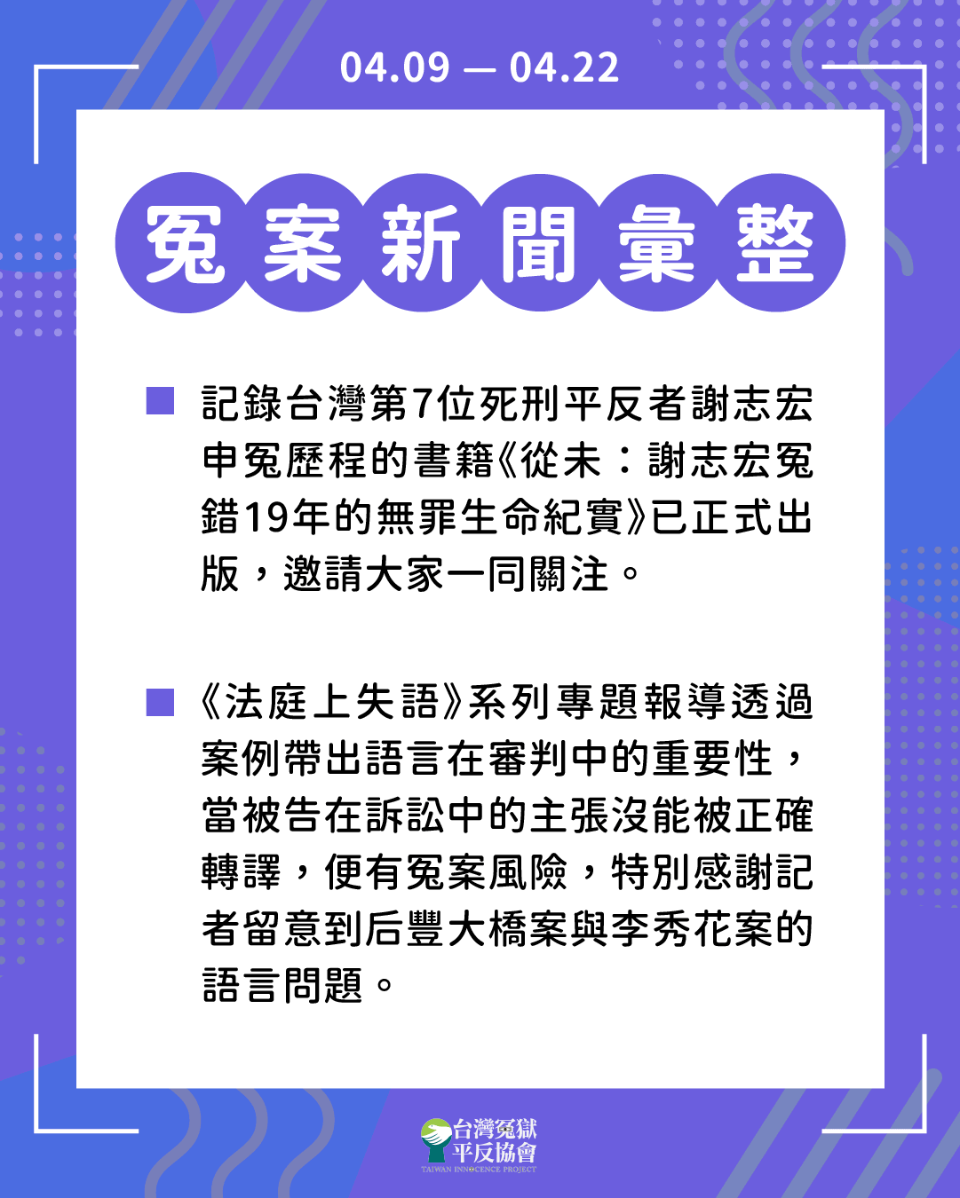 平冤雙週報 04/09-04/22